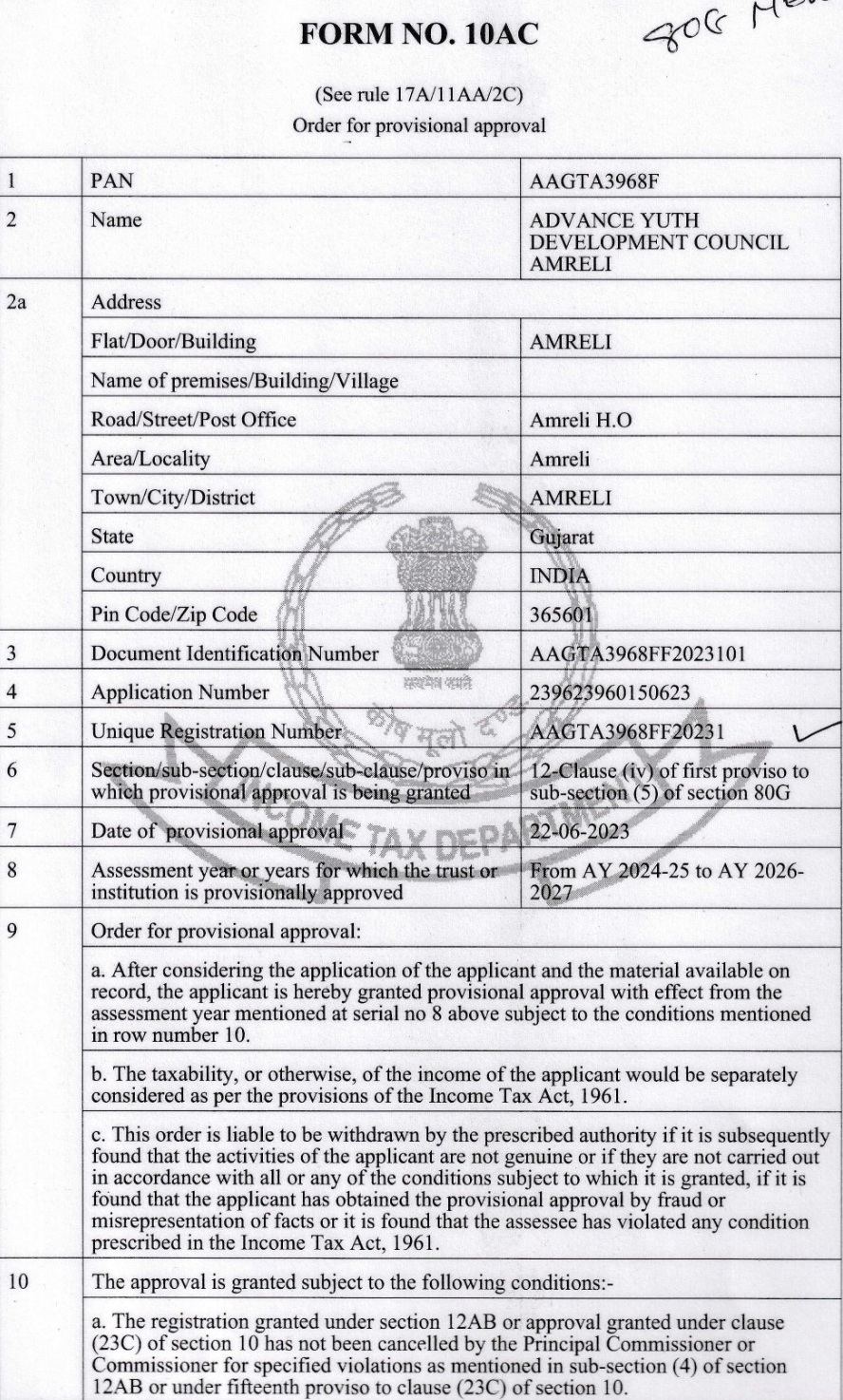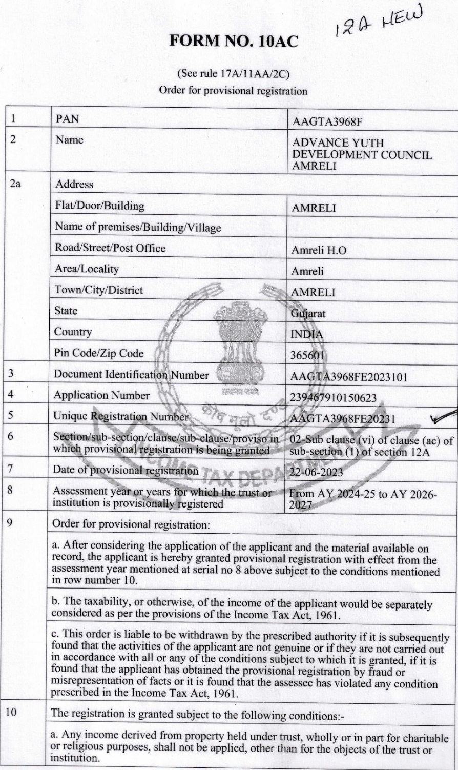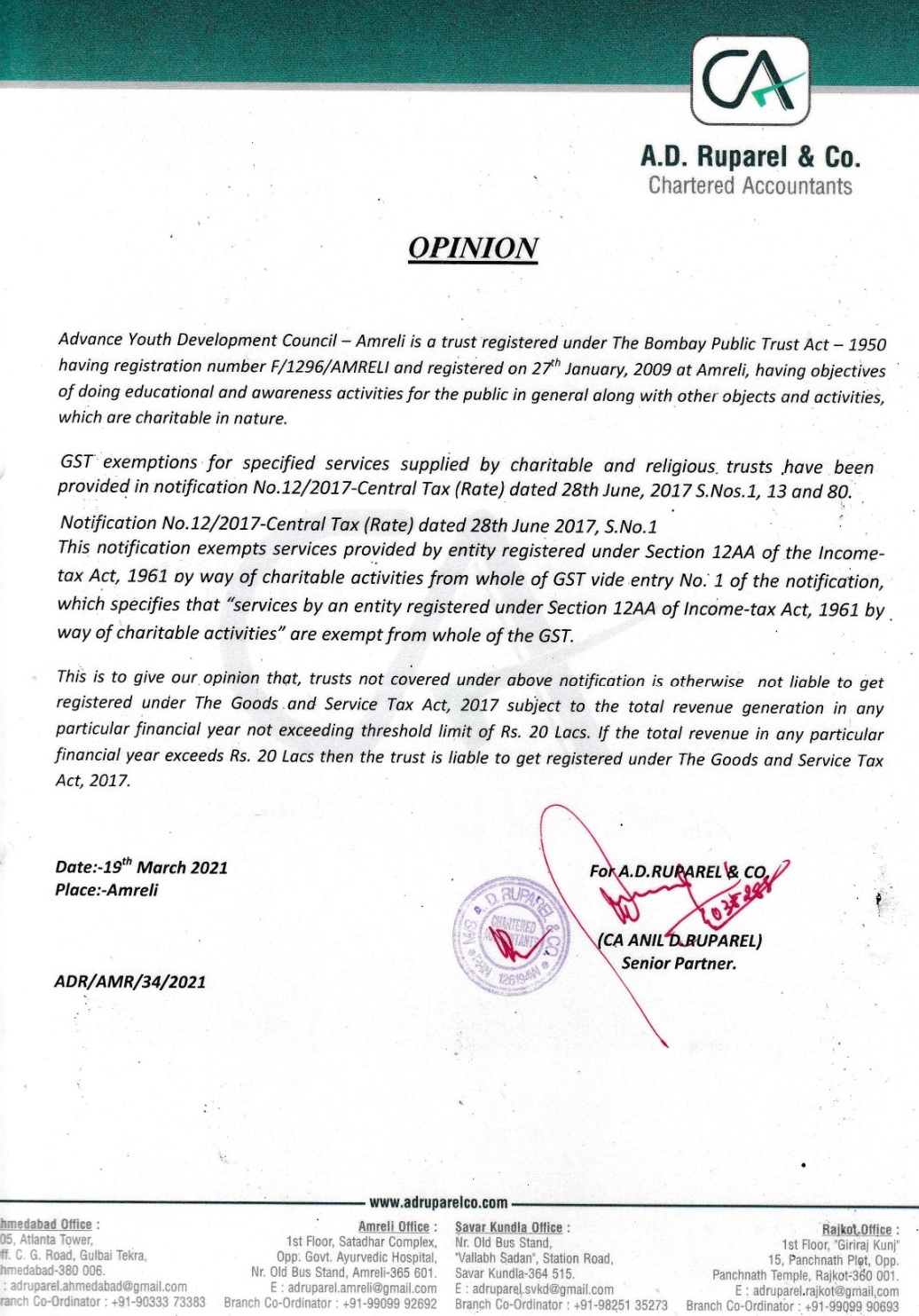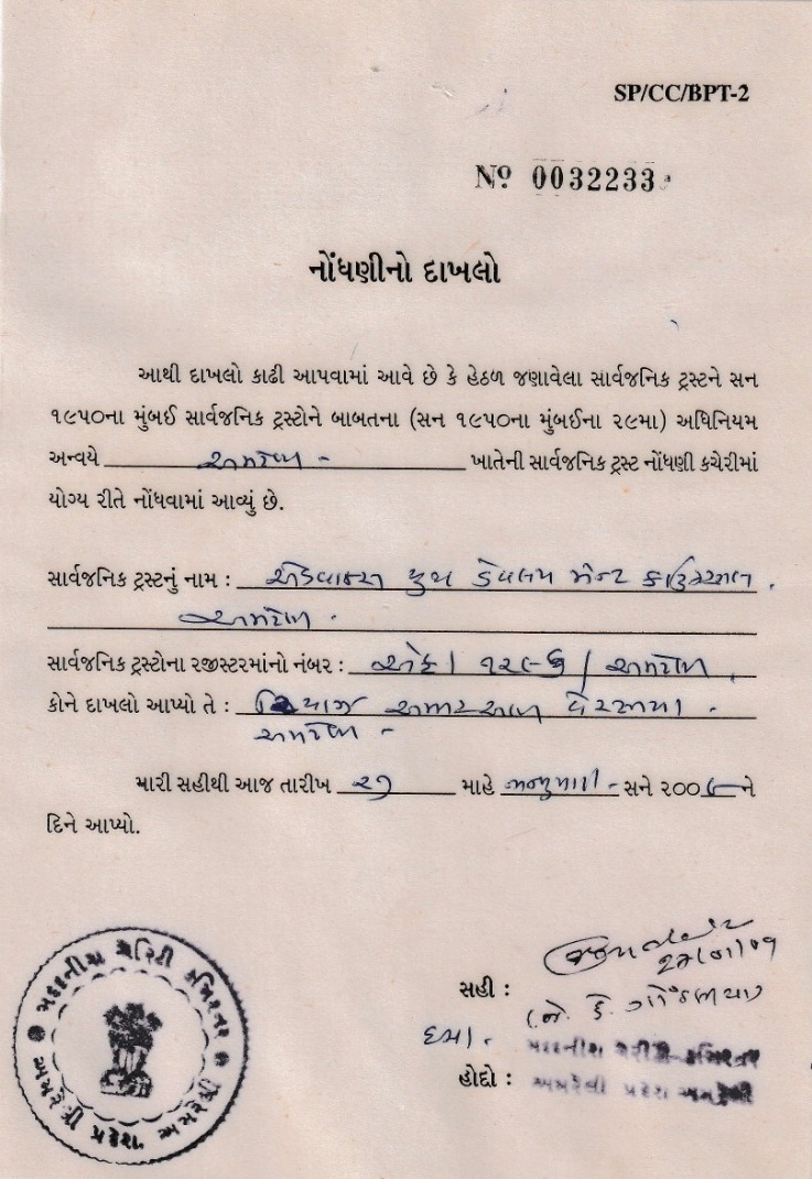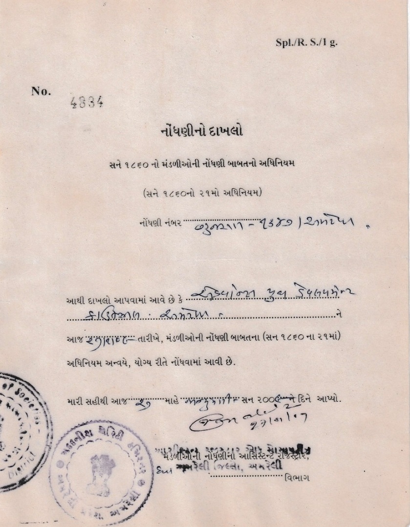 Trust Reg. No. - 1296 (Amreli), 1347 (Gujarat)